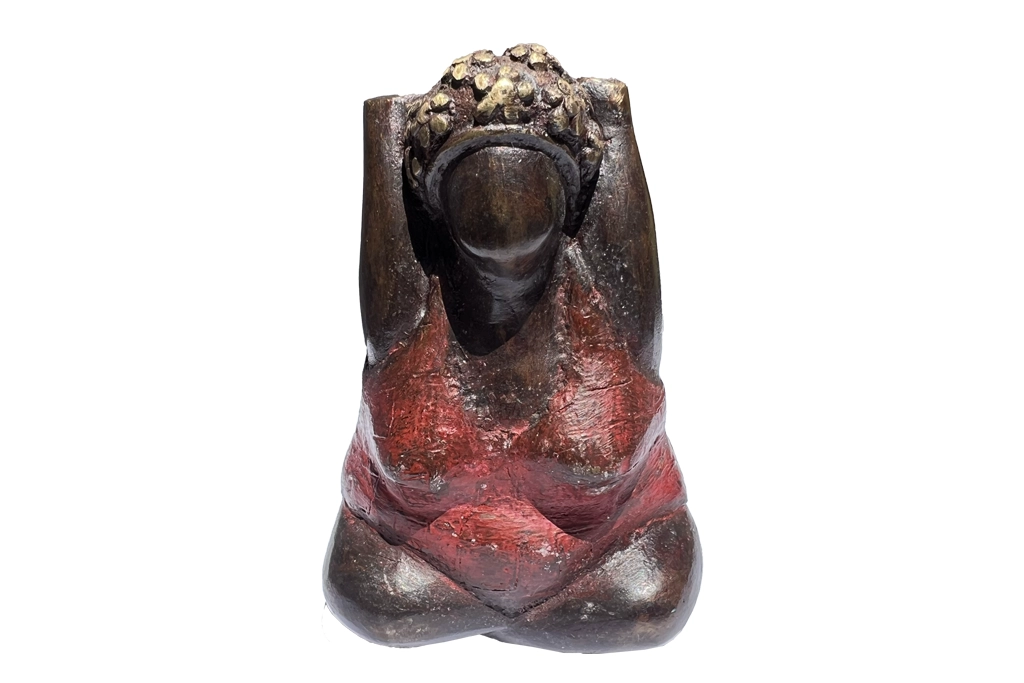 Her thick, powerful legs are grounded firmly, giving her an air of stability, while her softly rounded torso embodies both femininity and strength. The detailed craftsmanship in her posture and expression captures a sense of calm and self-assuredness, inviting admiration and reflection. This sculpture, with its bold representation of a thicker female form, challenges traditional standards of beauty and stands as a testament to the elegance and dignity of diverse body types.